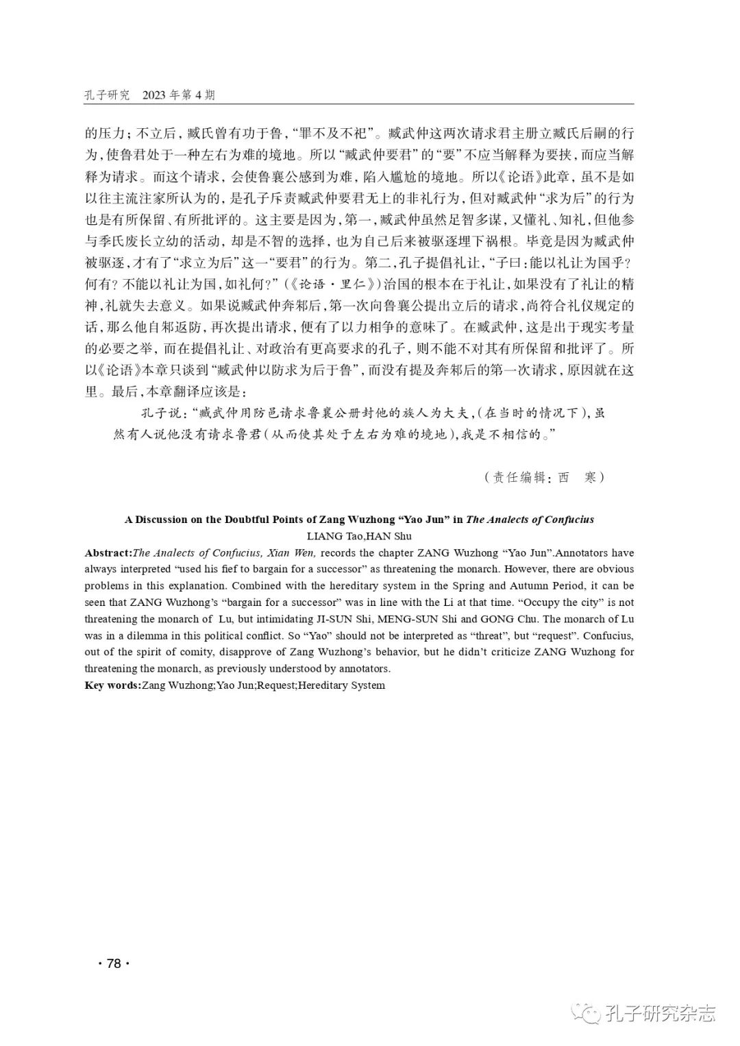 梁涛 韩述:《论语》臧武仲“要君”辨疑