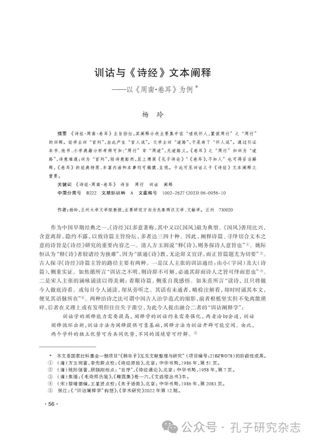 杨玲:训诂与《诗经》文本阐释 ——以《周南·卷耳》为例