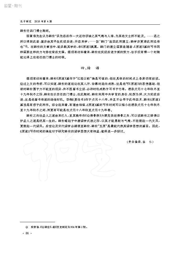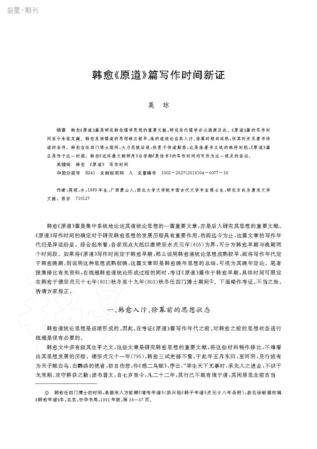 韩愈《原道》篇写作时间新证