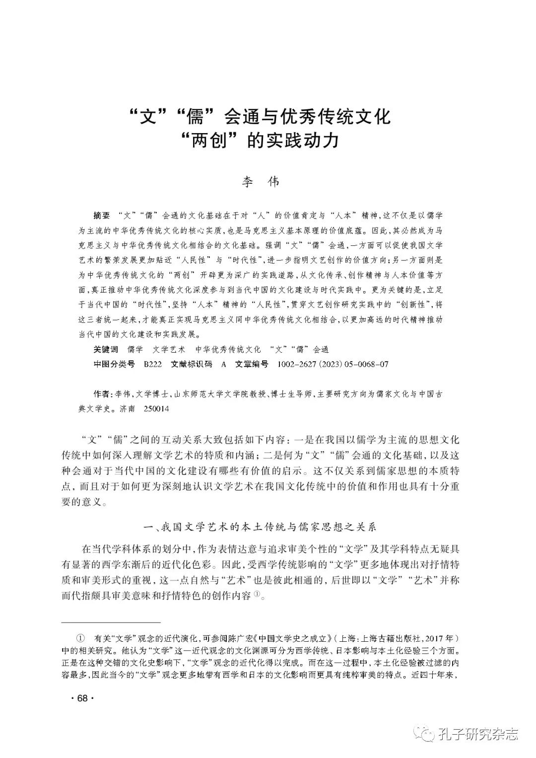 李伟 :“文”“儒”会通与优秀传统文化“两创”的实践动力
