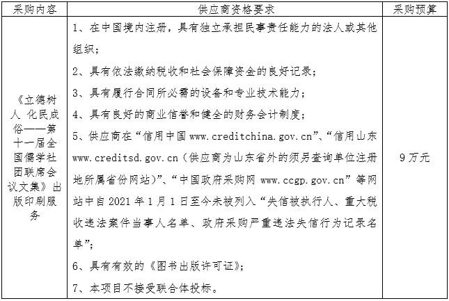 《立德树人 化民成俗——第十一届全国儒学社团联席会议文集》出版印刷服务项目竞争性磋商公告