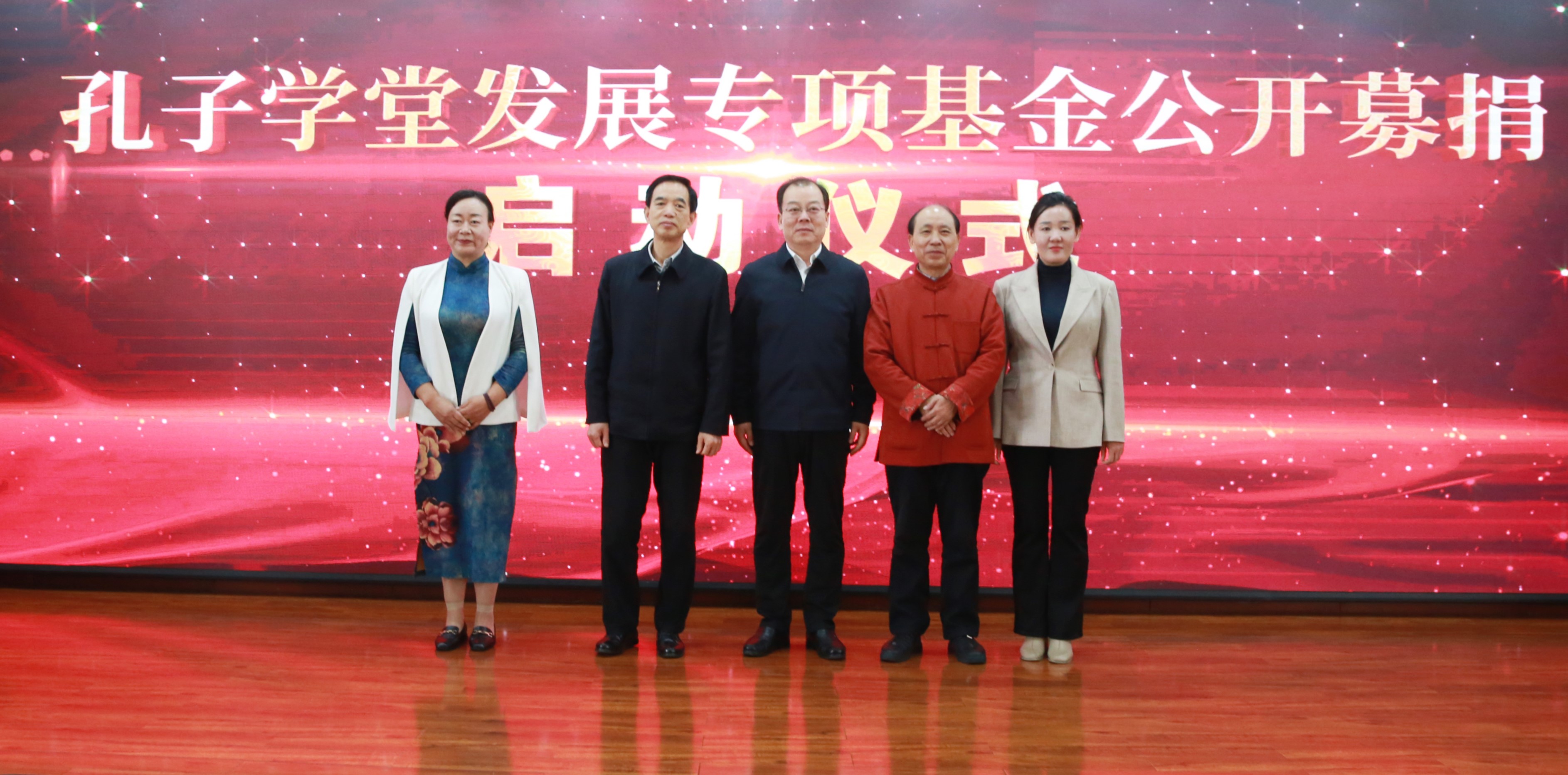 米怀勇、康承宝、孔子学堂推进委员会副主任刘孝听、张鸿雁,孔子学堂推进委员会委员张潇共同按下按钮,标志着中国孔子基金会孔子学堂发展专项基金公开募捐活动正式启动。