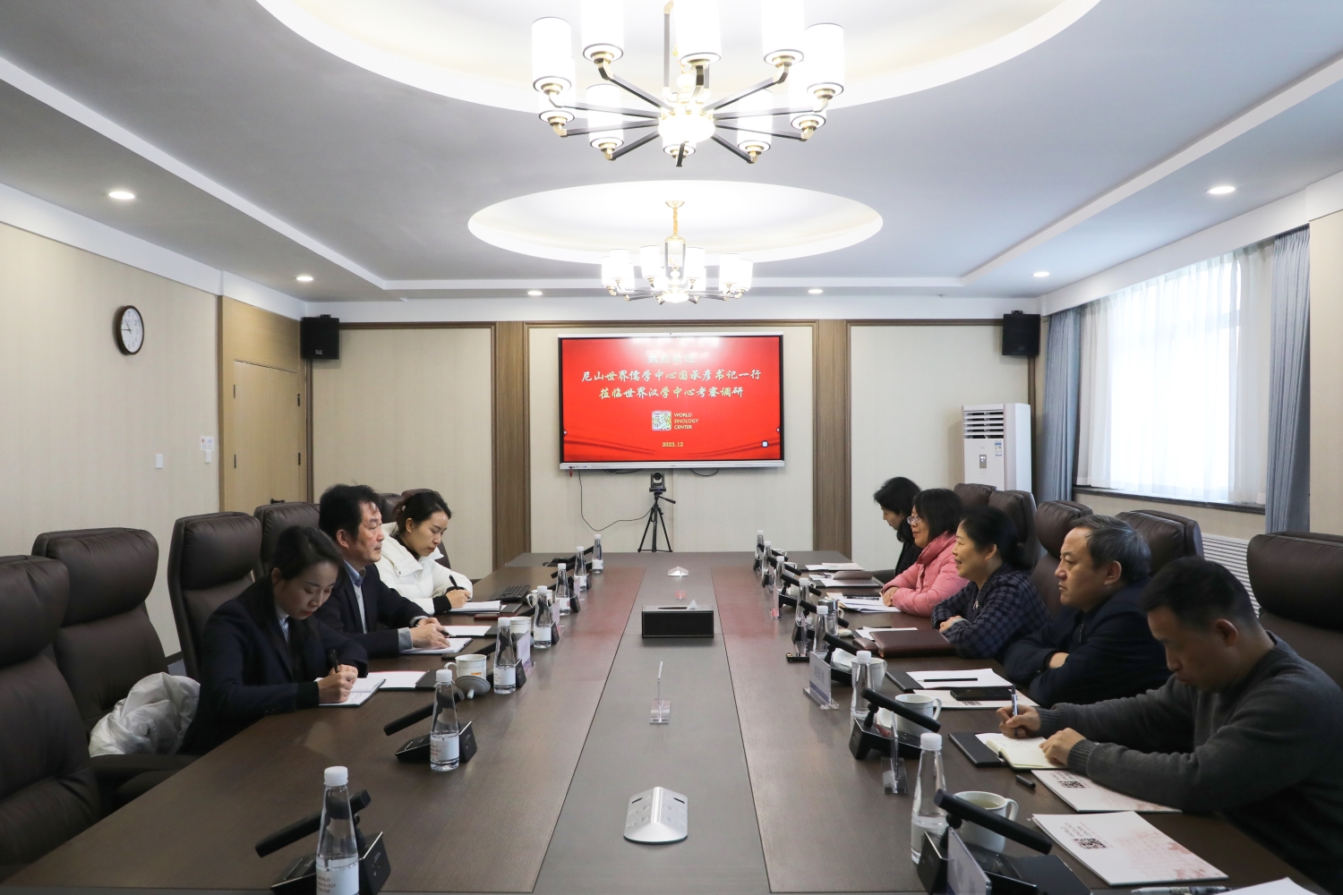 12月20日,尼山世界儒学中心(中国孔子基金会秘书处)党委书记、副主任,中国孔子基金会副理事长、秘书长国承彦一行到北京语言大学(青岛)世界汉学中心考察调研,并与世界汉学中心责任专家孙建华座谈交流。