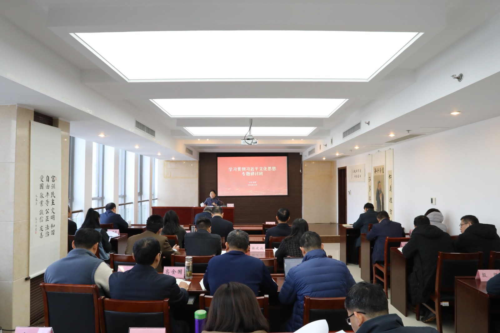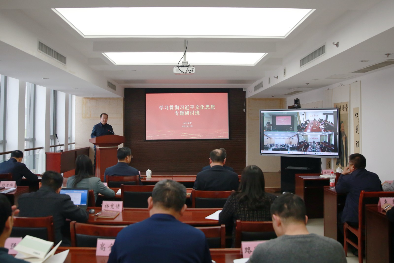 为深入学习贯彻习近平文化思想,贯彻落实全国、全省宣传思想文化工作会议精神,12月26日-27日,尼山世界儒学中心(中国孔子基金会秘书处)以线上线下形式举办学习贯彻习近平文化思想专题研讨班。尼山世界儒学中心(中国孔子基金会秘书处)党委书记、副主任国承彦作开班动员讲话。儒学中心(基金会秘书处)领导班子成员,中心机关县处级以上干部、副高级以上职称人员,孔子研究院、孔子博物馆、孟子研究院中层以上干部、副高级以上职称人员参加学习班。