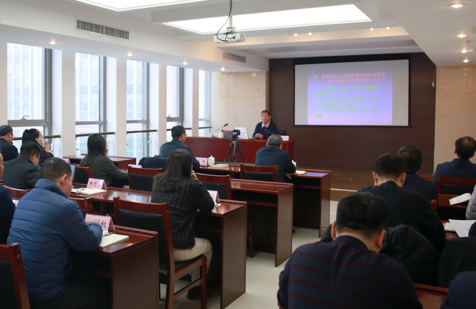12月27日上午,研讨班特别邀请山东大学哲学与社会发展学院教授何中华以“马克思主义基本原理同中华优秀传统文化相结合”为主题进行辅导讲座。