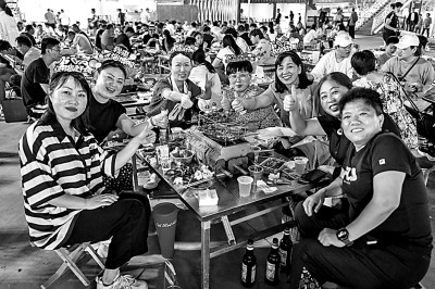 2023年夏天,游客在淄博品尝烧烤。光明图片/IC Photo