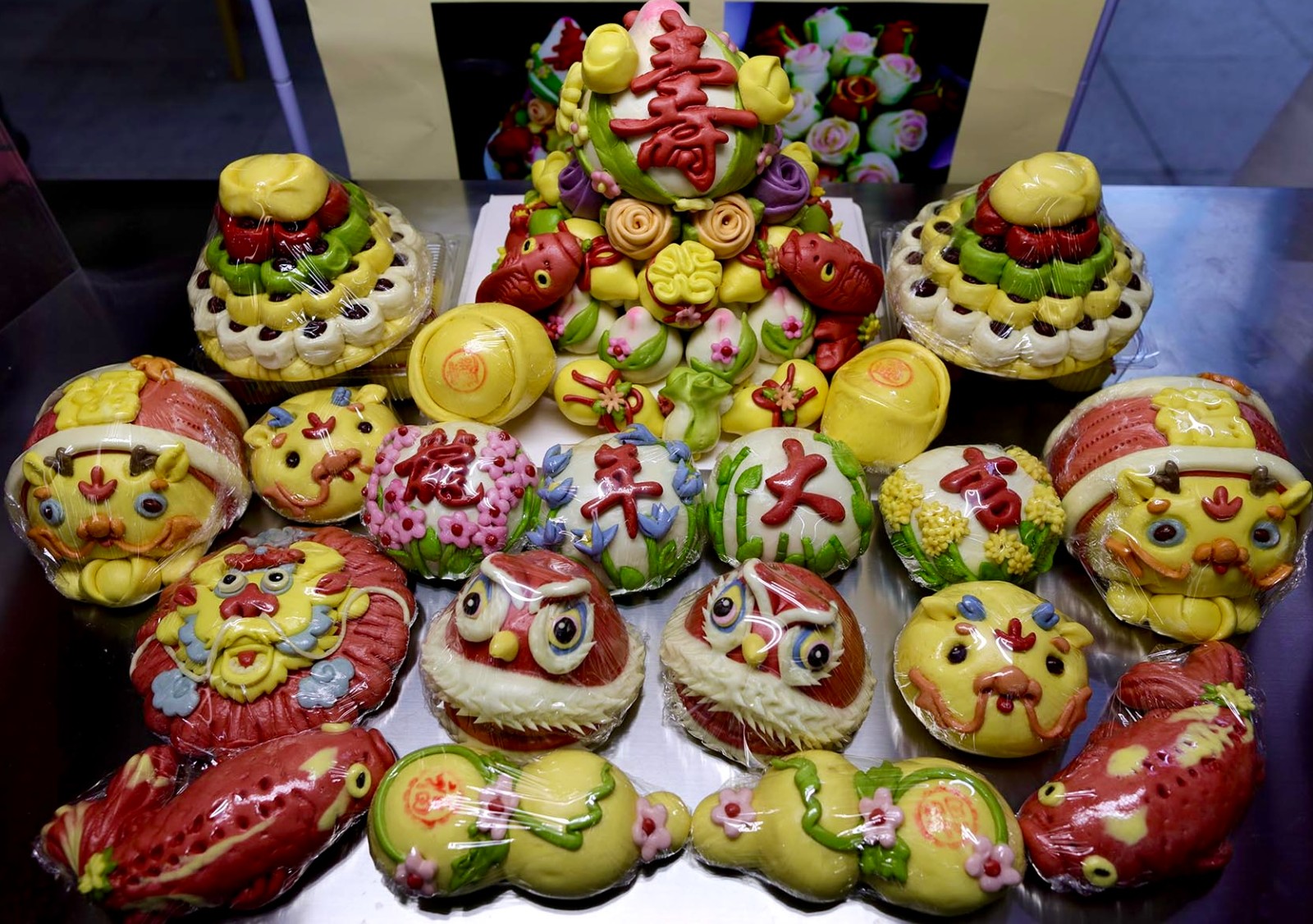 传统手工艺布老虎、龙吸引众多游客前来观赏。