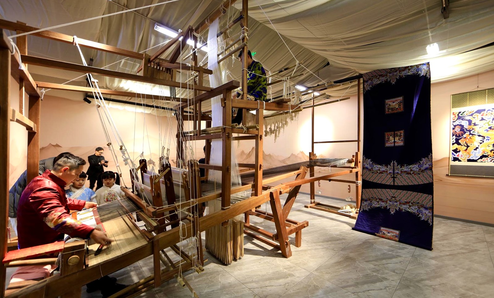 云锦大花楼木织机手工织造现场演示。(图文:侯新建)