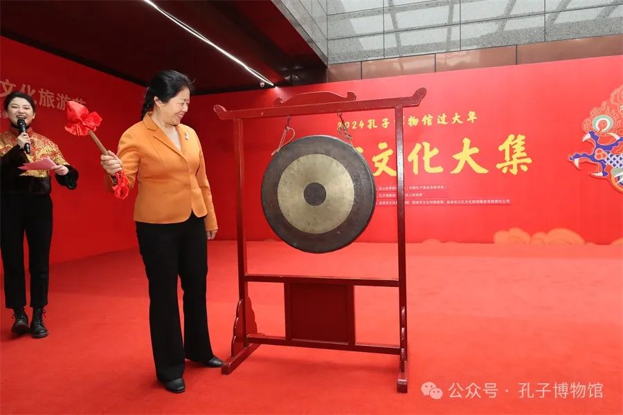 尼山世界儒学中心(中国孔子基金会秘书处)党委书记、副主任,中国孔子基金会副理事长、秘书长国承彦同志为“2024孔子博物馆过大年·黄河文化大集”鸣锣开集。
