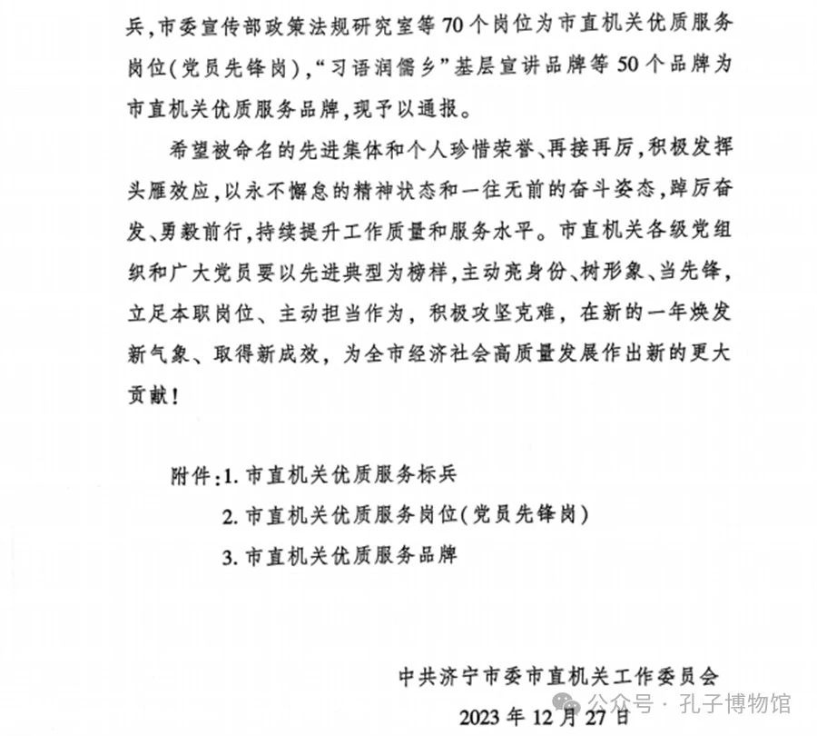 喜报!孔子博物馆“子约”志愿服务品牌荣获济宁“市直机关优质服务品牌”称号