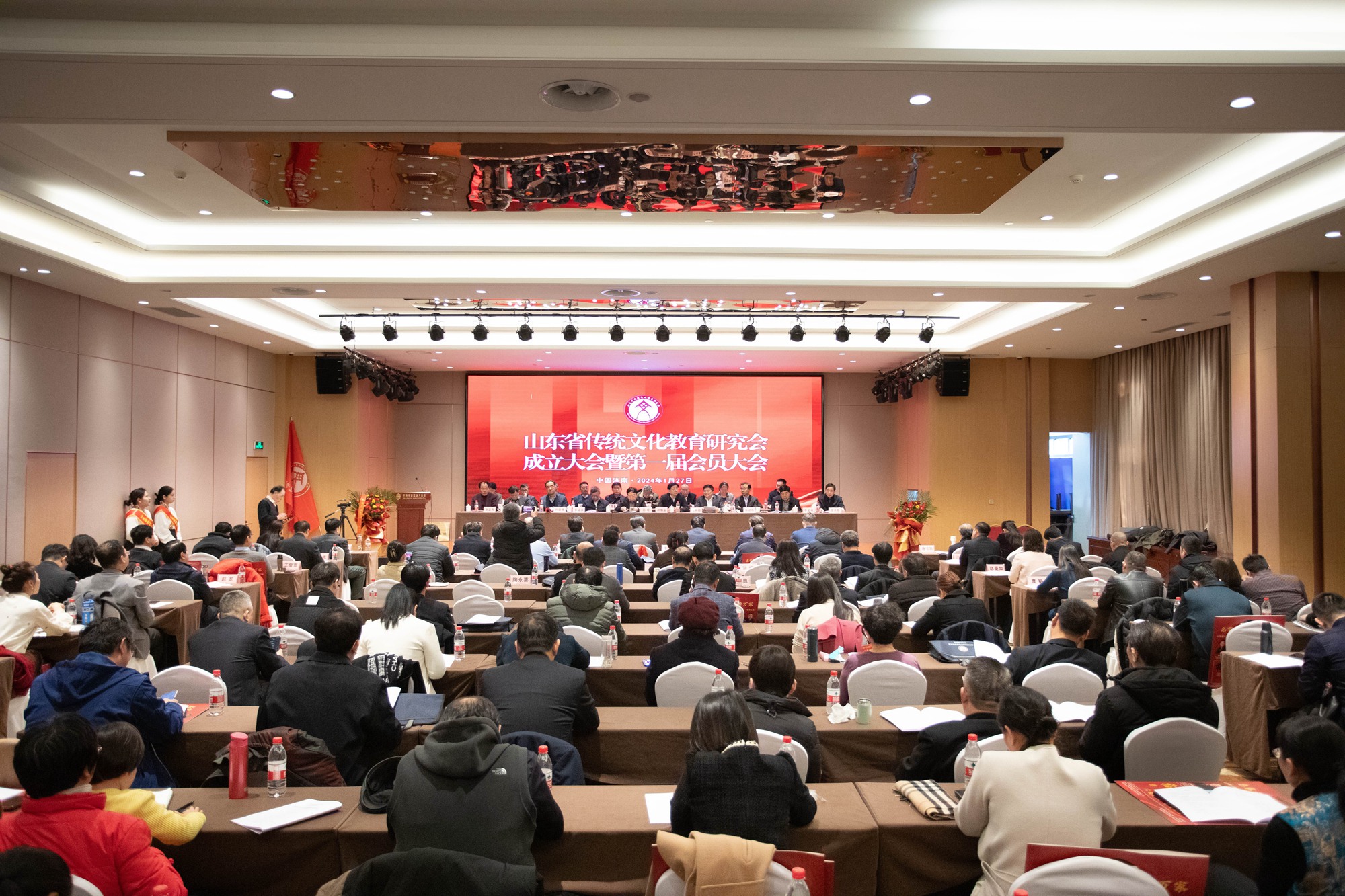 1月27日,山东省传统文化教育研究会成立大会暨第一届会员大会在济南隆重召开。全国政协常委、山东省政协副主席、省社会主义学院(山东中华文化学院)院长孙继业,山东行政学院原党委书记、尼山世界儒学中心特聘专家孙矩,山东省政府参事、二级研究员张述存,山东省民政厅党组成员、副厅长、省社会组织管理局局长张孟强等有关领导、专家、嘉宾和发起单位代表、139名会员出席会议。