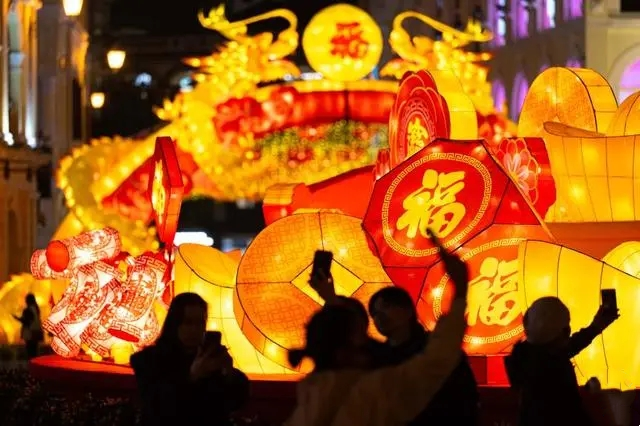 1月29日,澳门“龙腾飞舞庆丰年”灯饰点亮迎客。新华社发