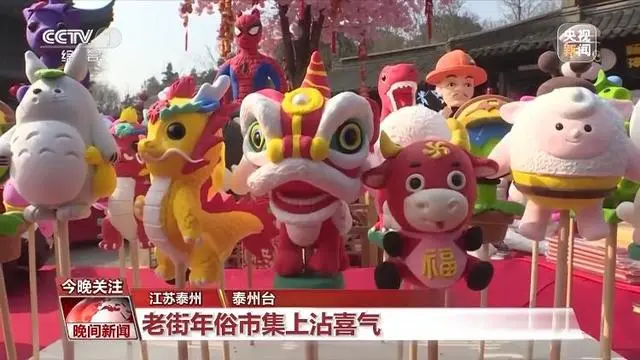 在江苏泰州老街上的年俗集市,舞龙表演队员们身着盛装,精神抖擞。地方特色小吃、游戏互动和手工艺品摊位,让游客满足了味蕾,增加了体验,买回了年礼。