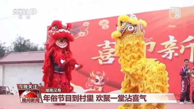 在湖南常德汉寿县,村民不出村就能看到丰富的年俗节目,威风凛凛的“雄狮”在爆竹和锣鼓的铿锵伴奏下,舞得风生水起。100张圆桌整齐排列,1000余位村民欢聚一堂,共同感受过年的喜气。