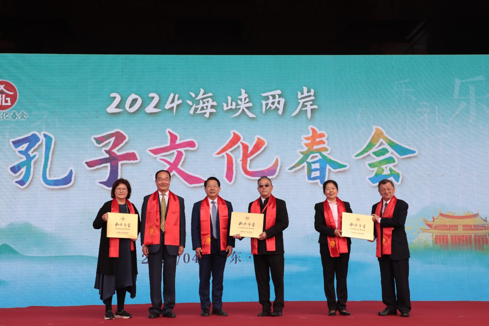 现场举行孔子学堂授牌仪式。国承彦、张连三、周云平为台湾山东同乡会、台湾中华齐鲁文经协会、台北市魏氏宗亲会“孔子学堂”授牌。世界孔子后裔联谊会副会长、山东画院原院长孔维克向新设立的孔子学堂赠送孔子画像。作为中国孔子基金会打造的重要公益文化品牌,孔子学堂已覆盖全国31个省区市和海外17个国家地区,成为传承弘扬中华优秀传统文化的重要平台。本次成立并授牌的三家孔子学堂,是首次在台湾设立。