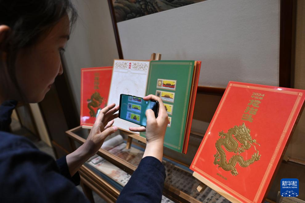 4月7日,记者在发布会上拍摄《龙抬头》邮册。新华社记者 金良快 摄