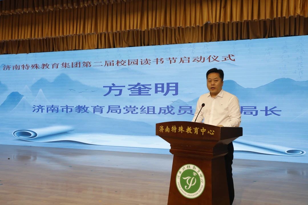 读书节启动仪式上,济南市教育局党组成员、副局长方奎明表示,自2023年始,济南市教育局开展中小学“泉悦读”读书工程,用“书香”为泉城学子全面成长架桥、奠基、赋能。在特殊教育领域,济南首创“泉融和”特殊教育融合教育品牌,各特教学校要聚焦残疾儿童青少年阅读“小切口,写好素质教育“大文章”;要坚持“每一个孩子都需要被深深看见”的理念,进一步优化支持阅读环境,扩增阅读服务资源,在常规读书展示活动、展示形式与主题内容的基础上,创新形式,创意内容,做到“细微处见深情,无痕处感温暖”。