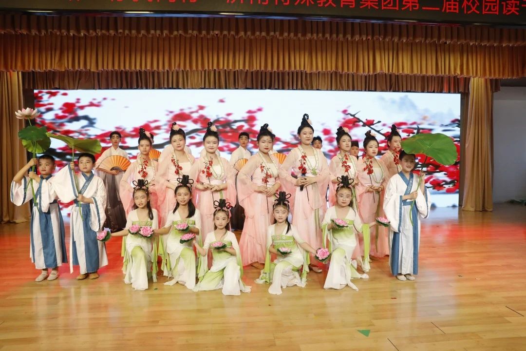 济南特殊教育集团师生现场展示了诗乐舞《四季》、诗歌咏诵《中华少年》《春江花月夜》、情景剧《将进酒》、接力诵读《论语》《诗意中国》等精彩节目。