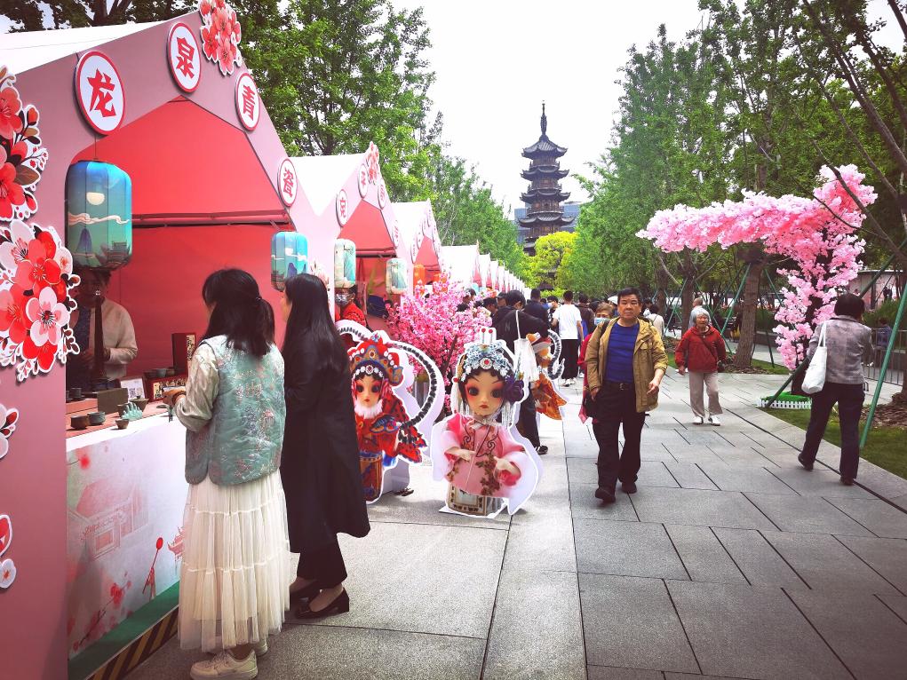 入境游客逛上海龙华庙会市集。新华社发(范筱明摄)