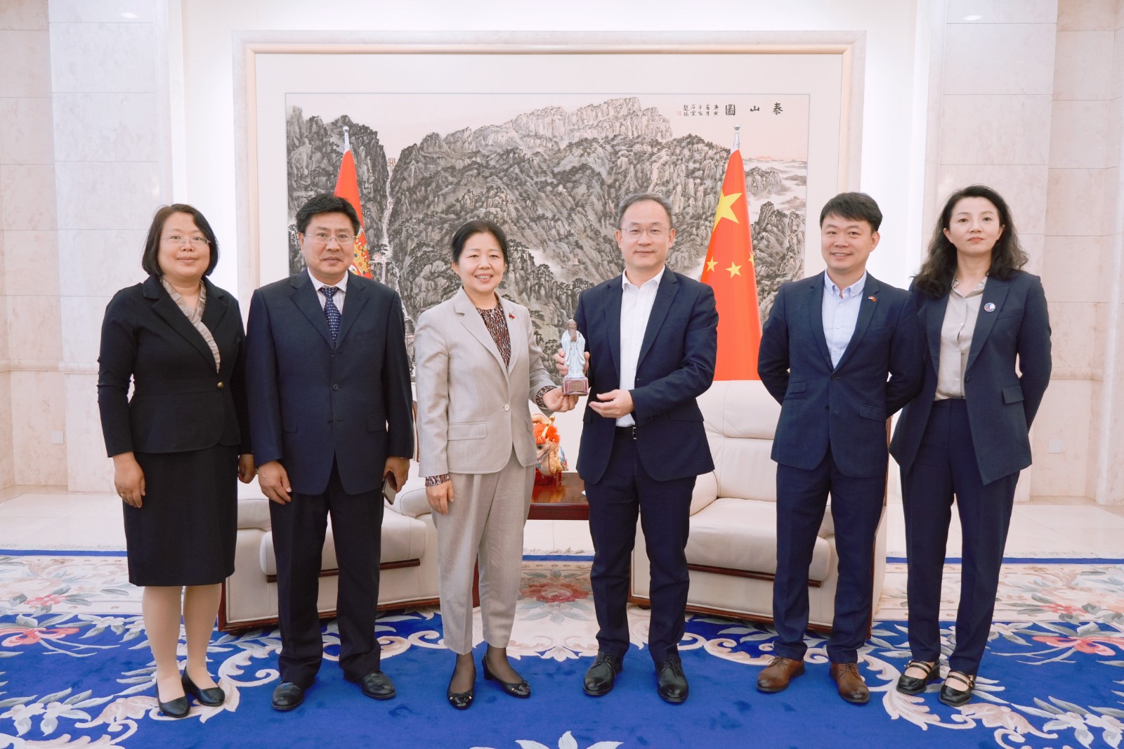 李明对国承彦一行表示热烈欢迎。他说,习近平主席对塞尔维亚国事访问成果丰硕,亮点纷呈,意义重大,影响深远。两国元首签署联合声明,共同宣布构建新时代中塞命运共同体,开启中塞关系历史新篇章。塞尔维亚成为首个同中国共同构建命运共同体的欧洲国家,极大提升了中塞关系水平,将有力推动中塞文化、教育等领域的交流合作不断向深层次发展。希望双方充分发挥各自优势,结合实际,创新举措,深入探讨尼山世界文明论坛分论坛落地工作,推动在塞尔维亚设立尼山世界儒学中心分中心,联合做实中塞文化交流活动。