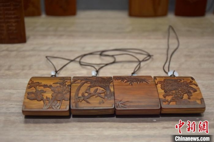 图为南昌竹雕非遗传承人胡清雕刻的作品。巫发阳摄