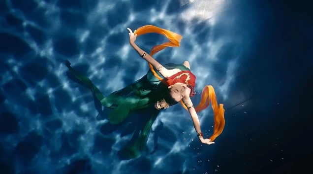 演员演绎水下飞天舞蹈《洛神水赋》