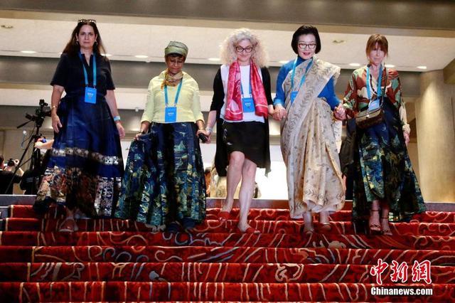 7月10日,山东曲阜,外宾身着中国传统服饰马面裙出席第十届尼山世界文明论坛开幕式。当天,来自海内外的各界嘉宾齐聚孔子故里,共话传统文化与现代文明。中新社记者 梁犇 摄