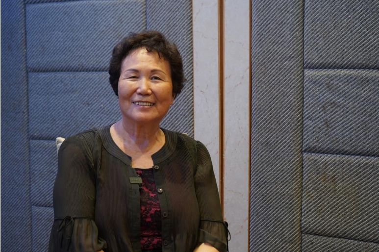香港商务印书馆前员工陈润琼在接受记者采访(4月30日摄)。新华社记者 龙镜伊 摄
