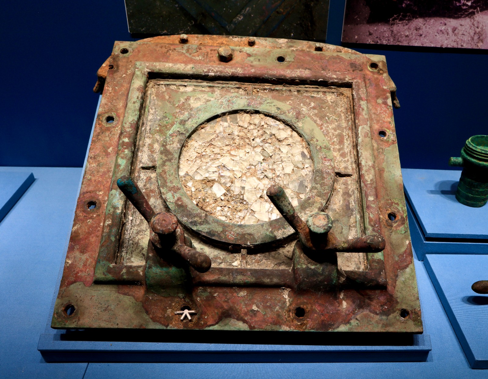 2018年辽宁庄河“经远”舰遗址出水的木构件、铜刻度盘、铜铭牌、水密门把手等