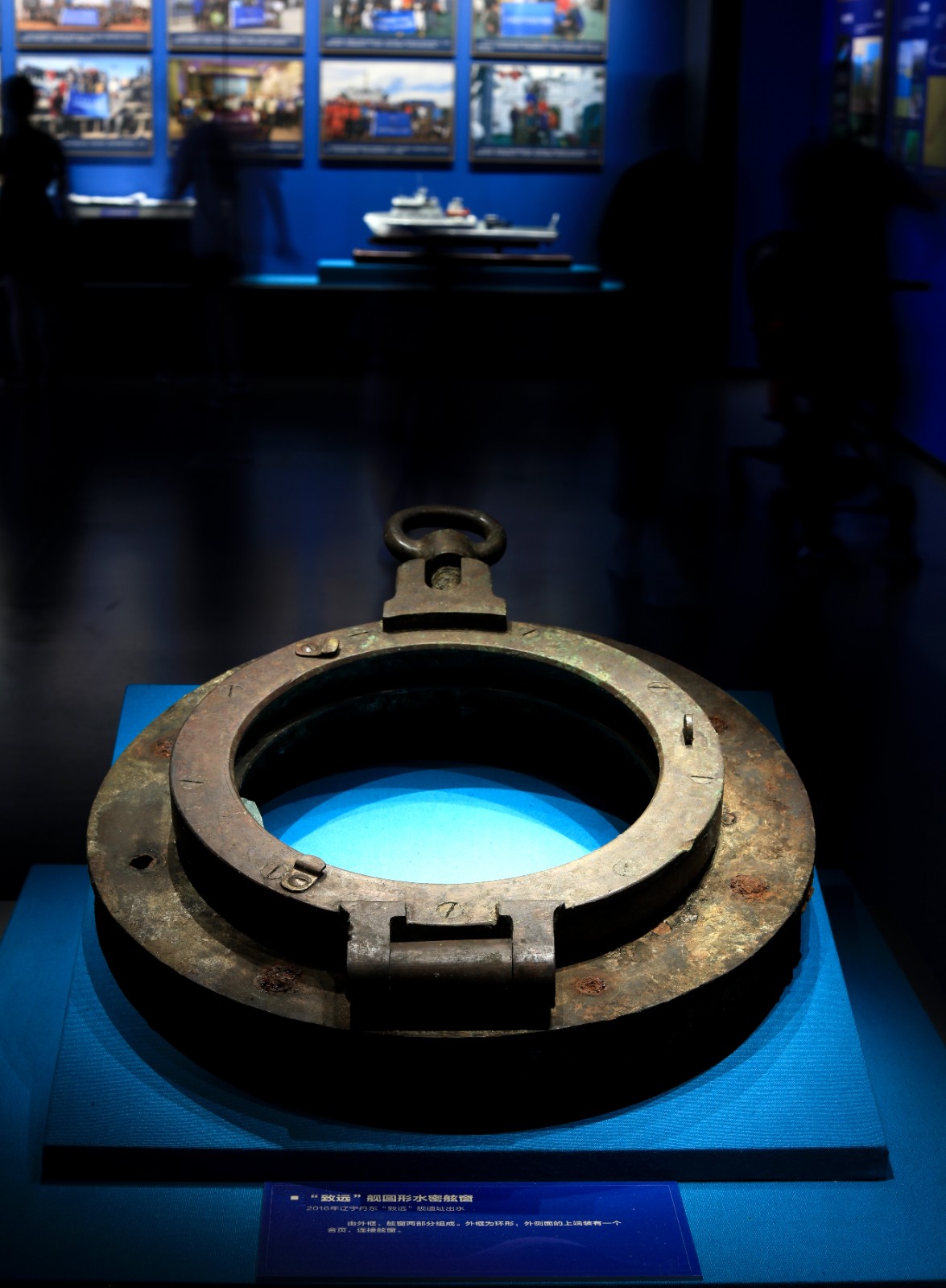 “致远”舰圆形水密舷窗,由外框、舷窗两部分组成。2016年辽宁丹东“致远”舰遗址出水