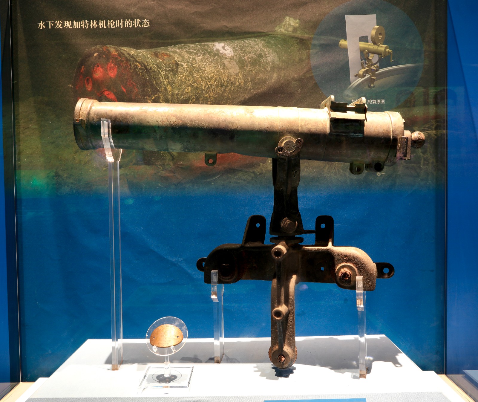 2014年辽宁丹东“致远”舰遗址出水的加特林机枪