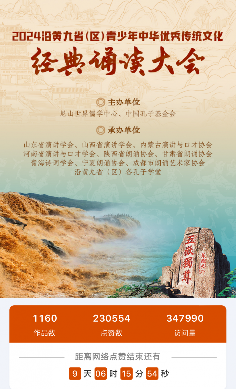 邀您助力!2024沿黄九省(区)青少年中华优秀传统文化经典诵读大会点赞环节火热进行中