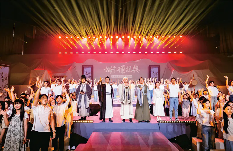 对祖国悠久历史、深厚文化的理解和接受,是爱国主义情感培育和发展的重要条件。图为2024年6月10日,在湖北大学举办的“青春中国节·荆风楚韵”端午诵经典活动。 共青团中央供图