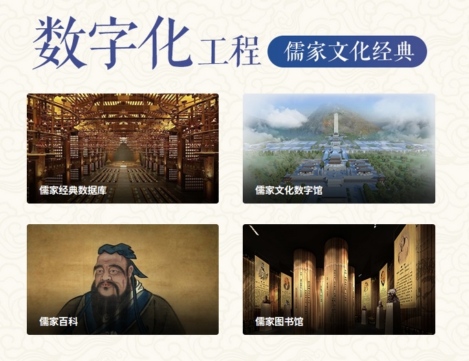 中国孔子基金会于2016年启动的山东省重点文化项目。完成儒家经典古籍文献纯文本数字化3000余卷,30余万页,约5000余万字,建设完成儒家文化经典数据库、儒家数字图书馆、儒家文化数字展馆等。