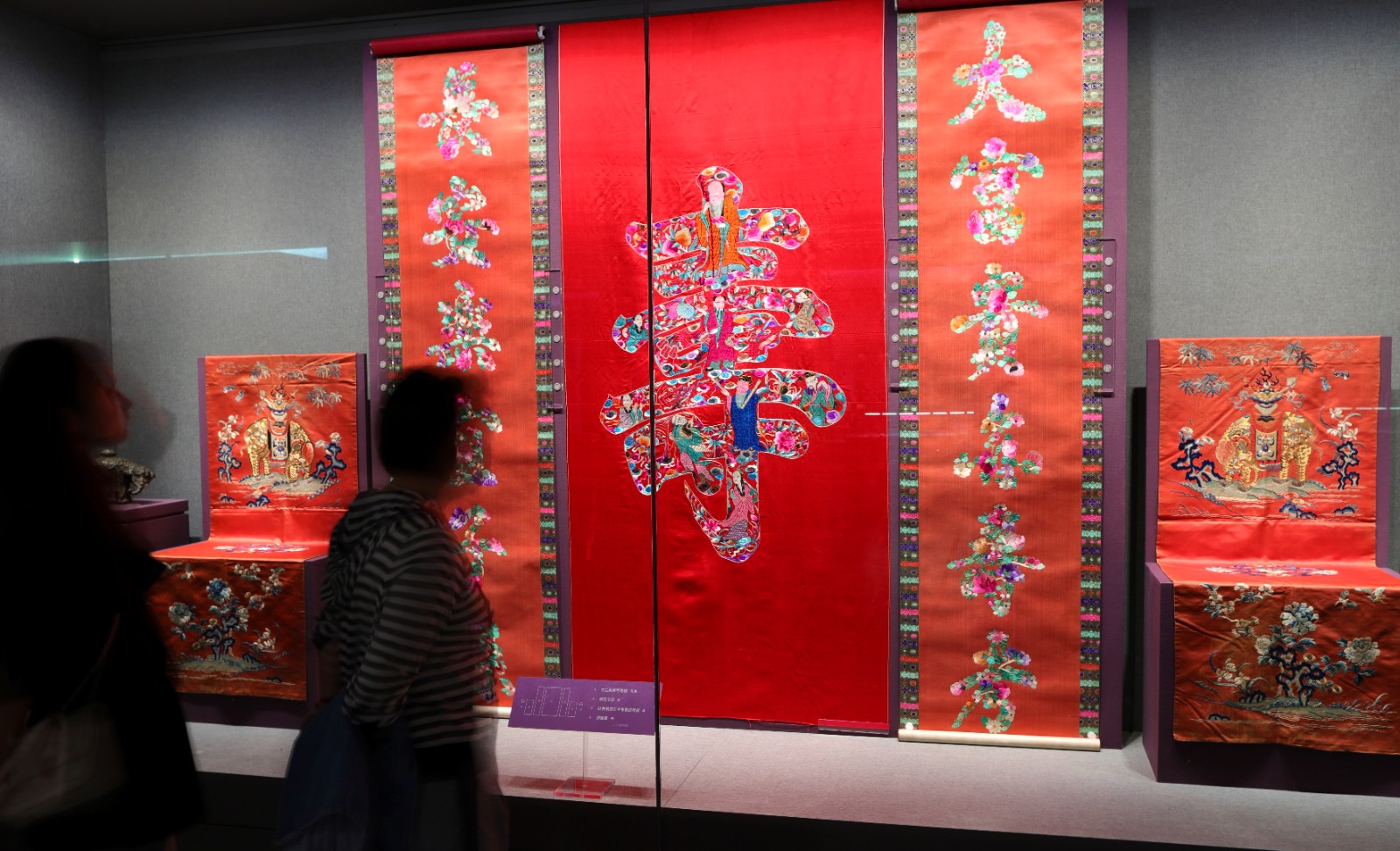 寿字寿幛、绣花字联等展示 侯新建 摄