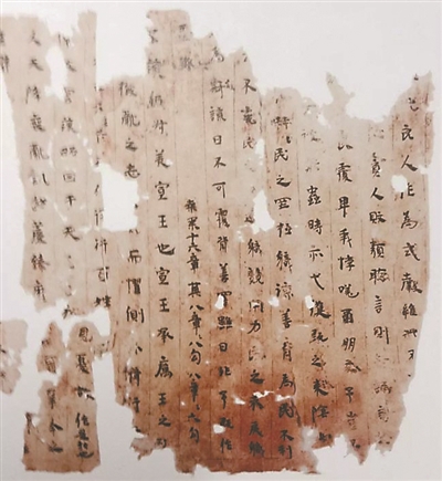吐鲁番鄯善县洋海1号墓地出土的前秦时期《诗经》写本残页。