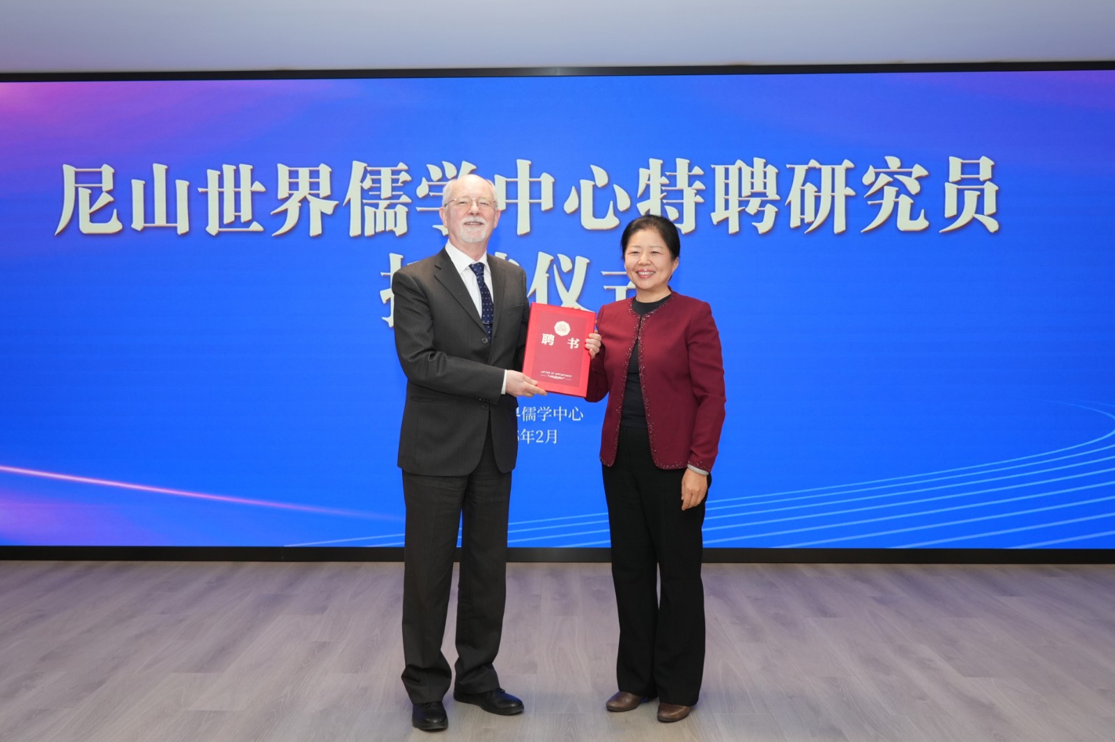 尼山世界儒学中心特聘研究员聘书、“齐鲁访学驻研计划”访问学者证书颁发现场