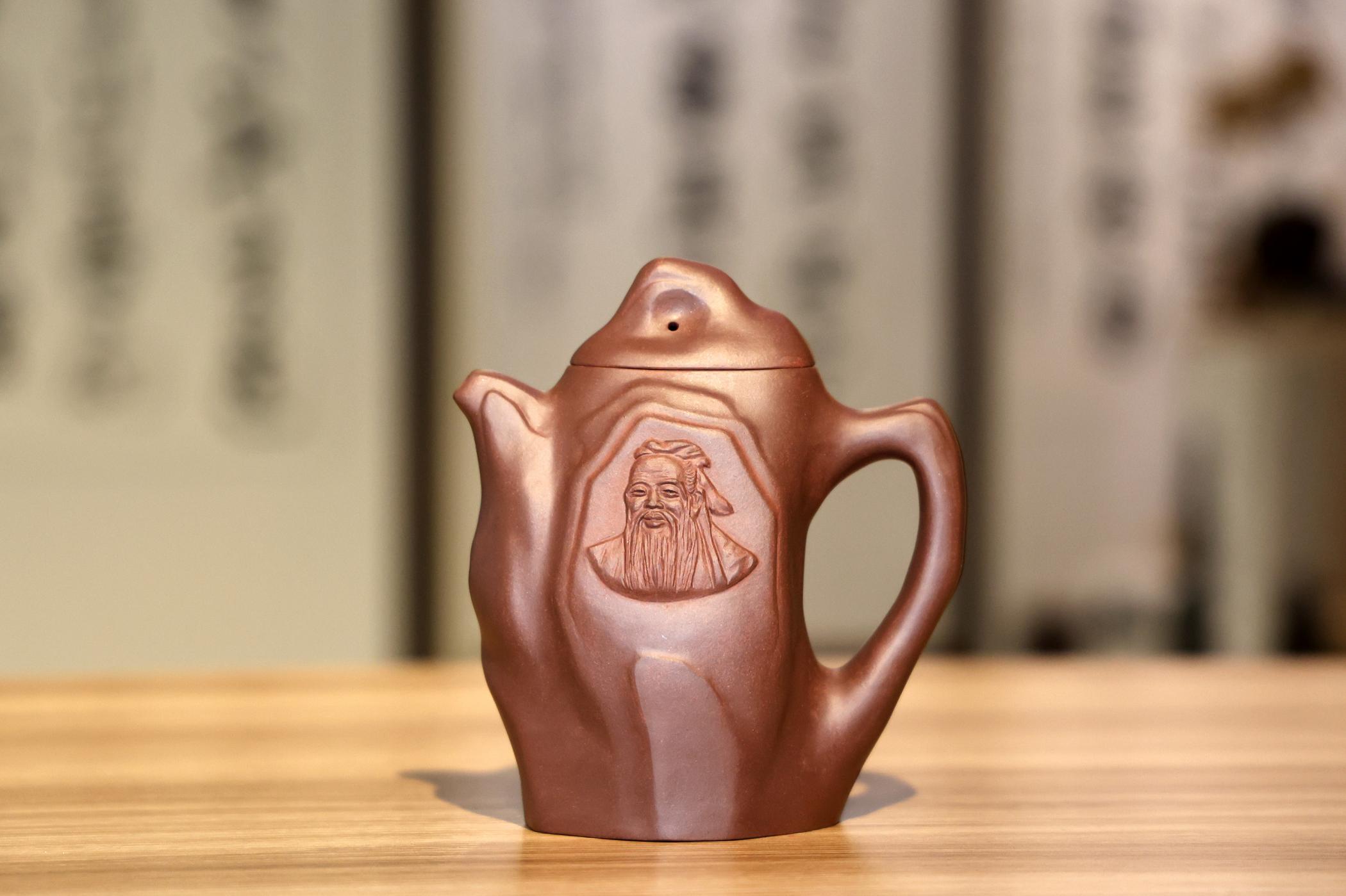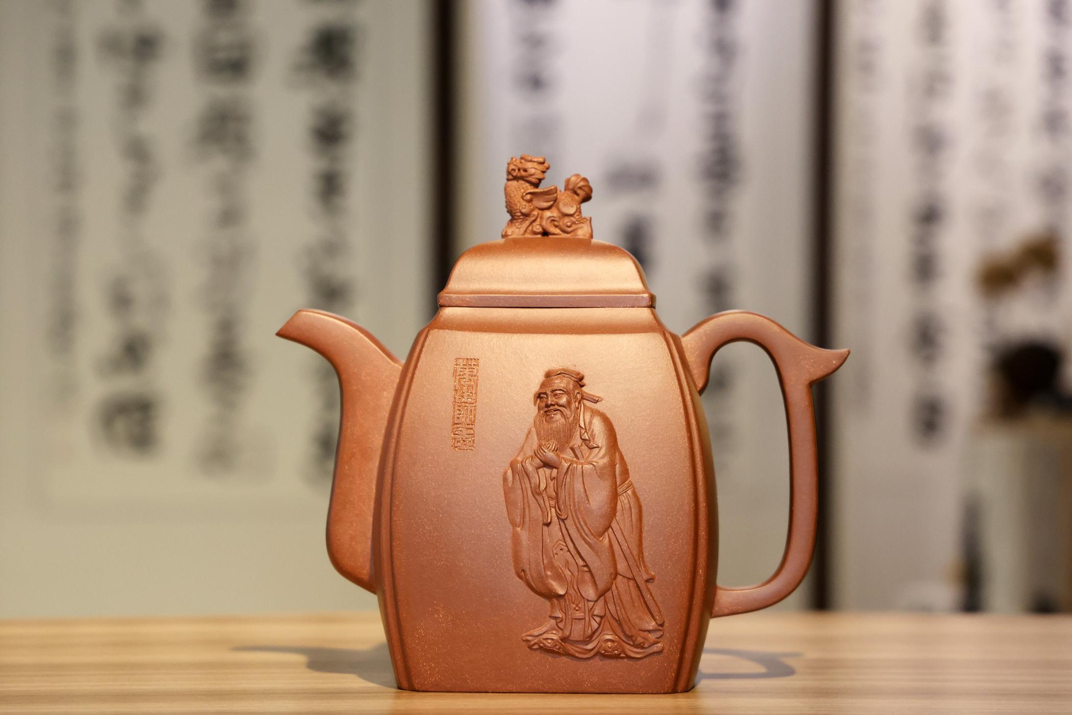 吴建荣、季顺林介绍,此次捐赠的孔子紫砂壶采用最经典的儒家故事作为创作元素,以脚踏祥云、口含玉书的麒麟形壶钮展现“麒麟吐玉书”的典故,通过四边抽角的制作工艺来隐喻孔子泗水河论水的故事,生动展现儒家文化的深邃内涵。孔令武表示,未来将多组织跨界融合活动,将更多的儒家文化与传统技艺相结合的作品捐赠给儒学文献收藏中心。
