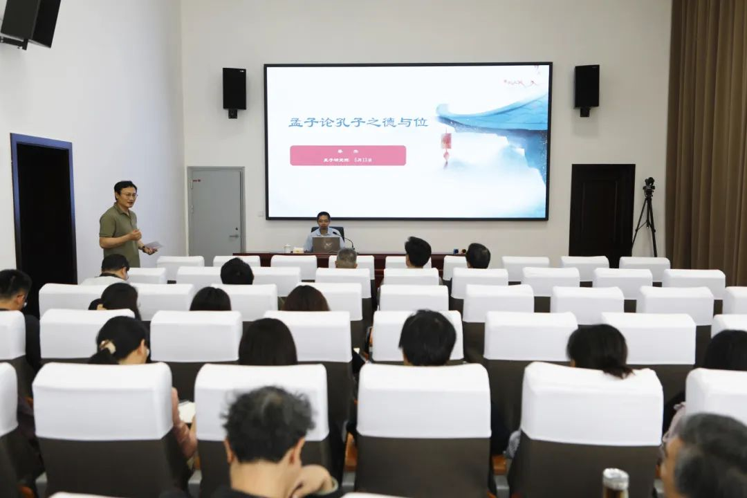 为深入学习贯彻习近平文化思想,积极践行新时代儒学传承使命,着力强化专业技术人才队伍建设,5月13日下午,孟子研究院邀请山东大学儒学高等研究院副教授蔡杰为全体工作人员作题为《孟子论孔子之德与位》专题讲座。孟子研究院党委委员、副院长赵龙、毛景卫,中共邹城市委党校、邹城市干部政德教育中心有关同志及孟子研究院全体工作人员共50余人聆听讲座。孟子与儒学研究部部长秦超主持讲座。
