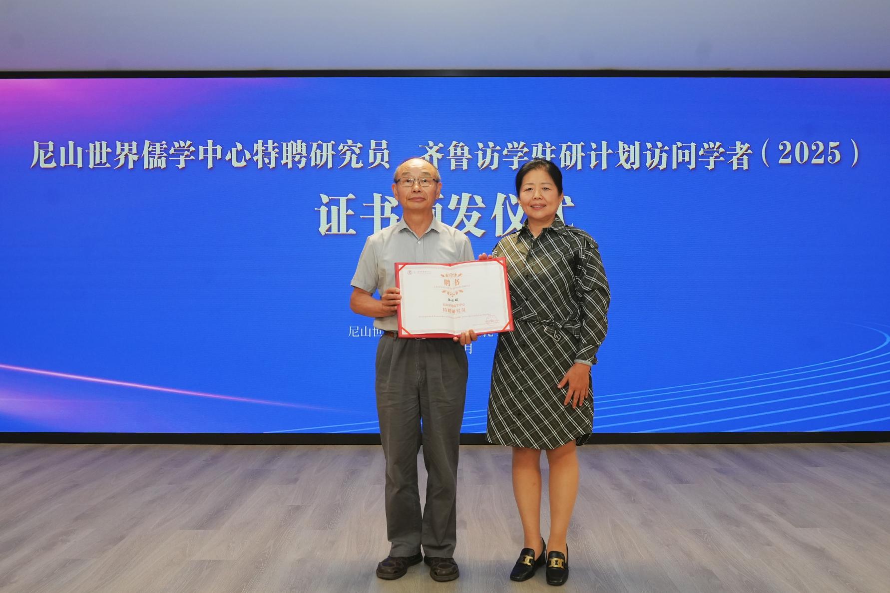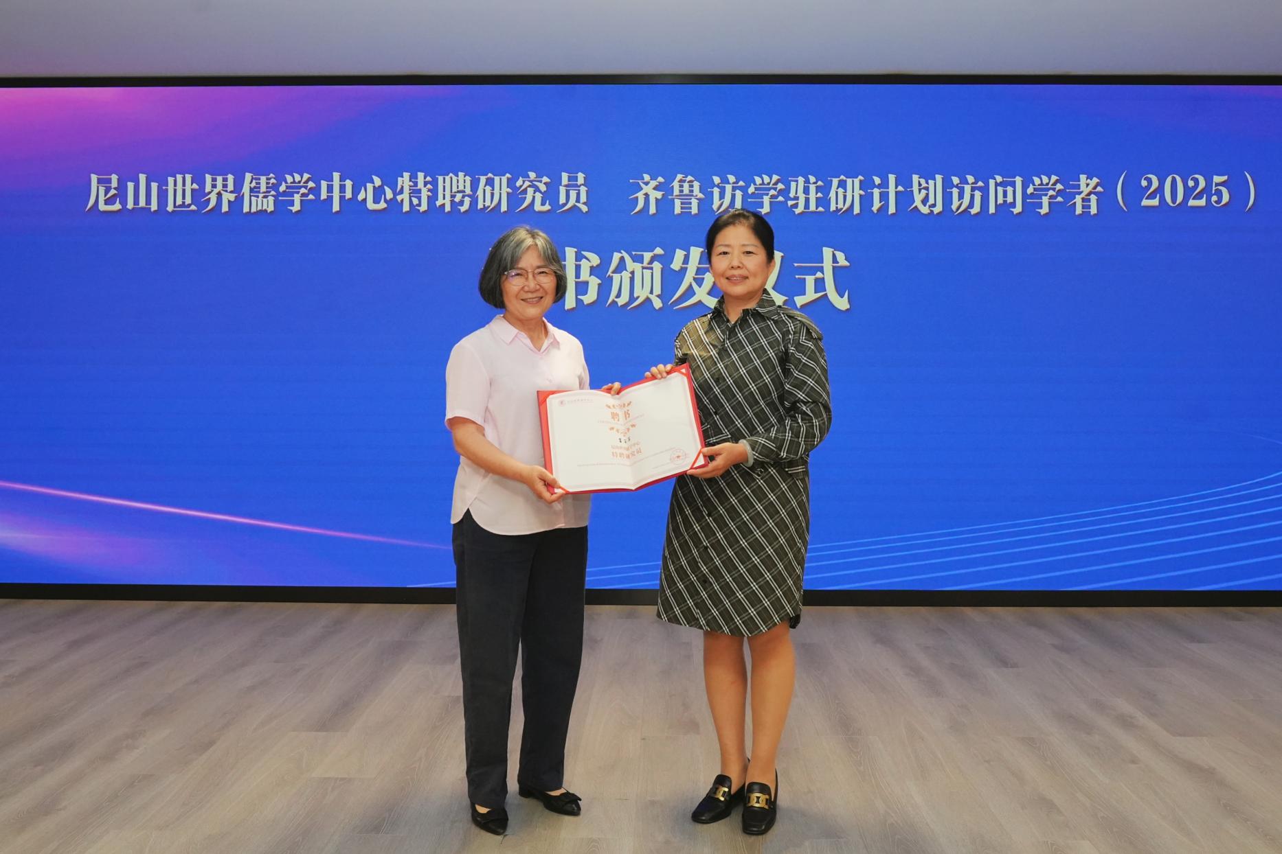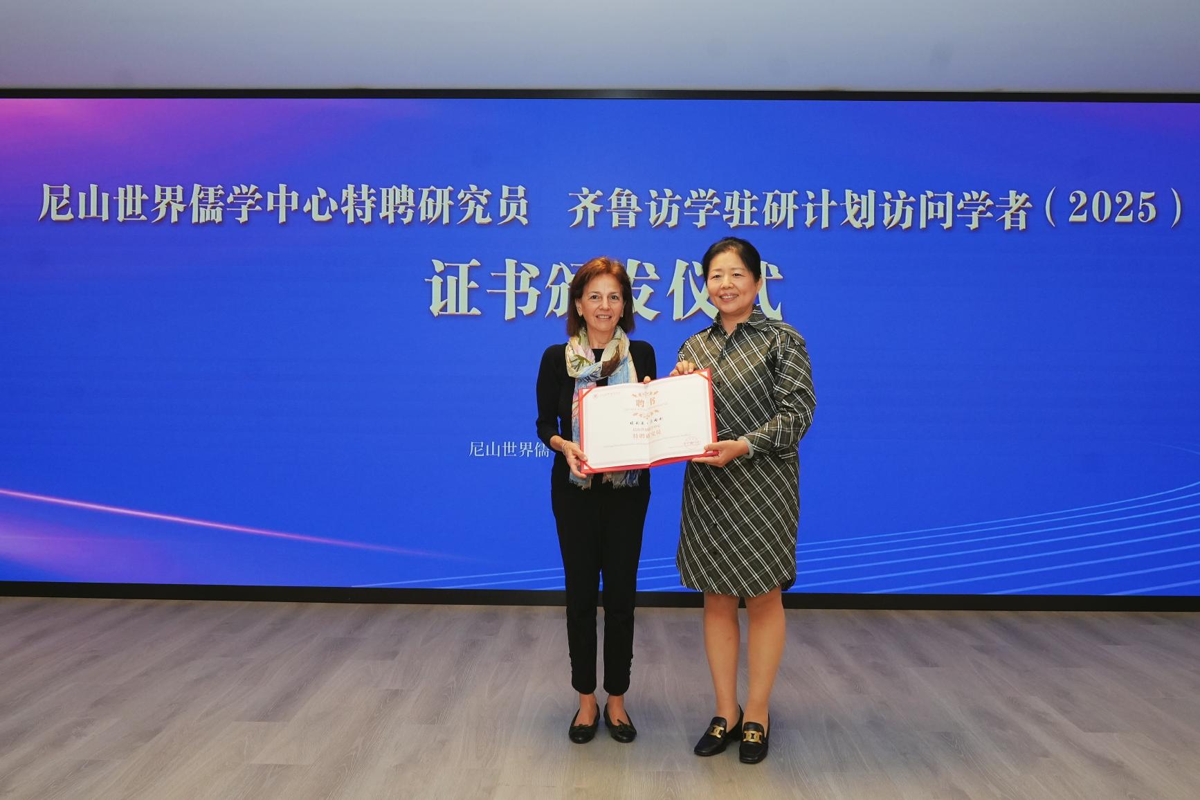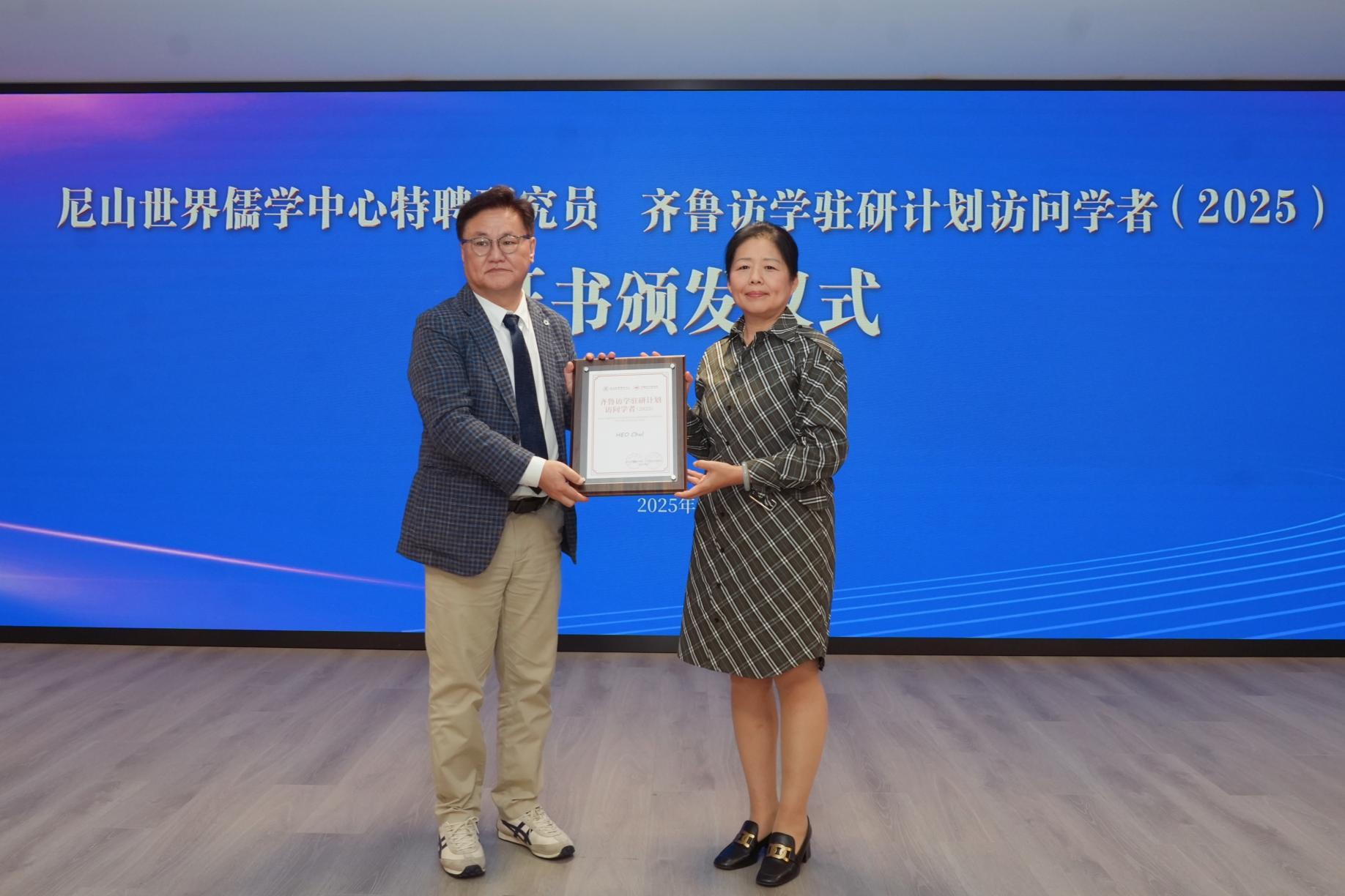 国承彦向玛利亚·马内利、伍晓明、余德烁、许喆、富萍萍颁发“齐鲁访学驻研计划访问学者(2025)”证书和尼山世界儒学中心特聘研究员聘书,向伍晓明颁发图书捐赠证书。