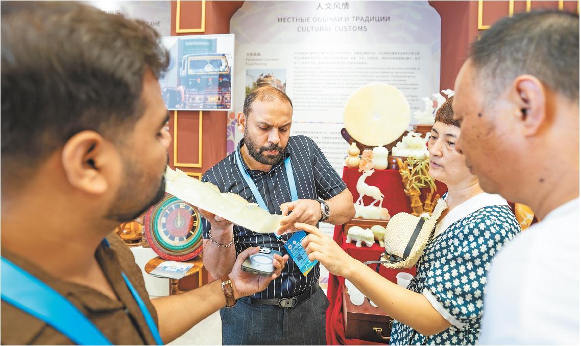 2025(第四届)上海合作组织国际投资贸易博览会上,游客正在巴基斯坦馆选购商品。