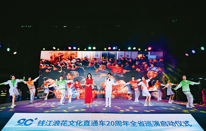 习近平总书记在浙江工作期间亲自谋划组建的“钱江浪花艺术团”,把优质文化节目直接送到基层群众身边,20年间已送出5000多场演出。图为2025年4月28日,钱江浪花文化直通车全省巡回演出活动启动现场。 浙江省文化广电和旅游厅供图
