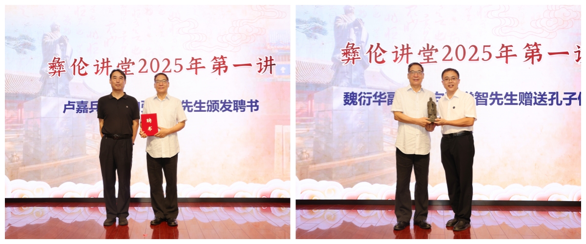 孔子研究院副院长、研究员魏衍华代表主办方致辞,并向张学智教授颁赠孔子像。孔庙和国子监博物馆馆长卢嘉兵主持讲座,向张学智教授颁发彝伦讲堂主讲教师聘书。