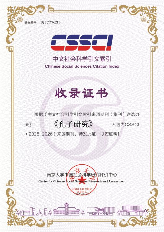 近日,《孔子研究》编辑部收到南京大学中国社会科学研究评价中心通知,根据《中文社会科学引文索引来源期刊(集刊)遴选办法》,《孔子研究》入选CSSCI(2025-2026)来源期刊。