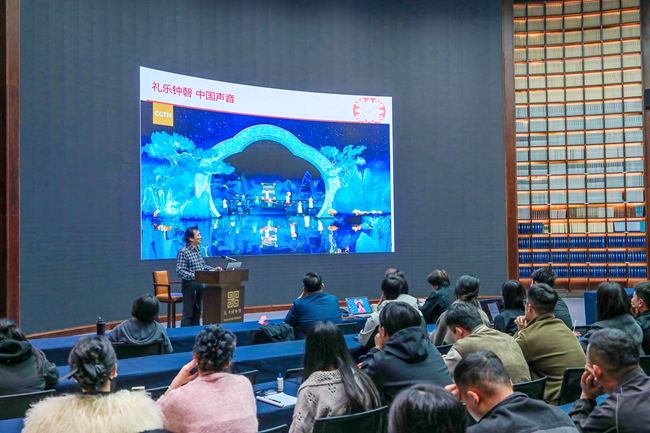 李教授在讲座里还播放了国内国际重大活动中演奏编钟的视频,让与会听众都聆听到编钟演奏的优美与庄重。讲座最后,与会听众踊跃提问,李教授一一耐心解答,气氛热烈而融洽。