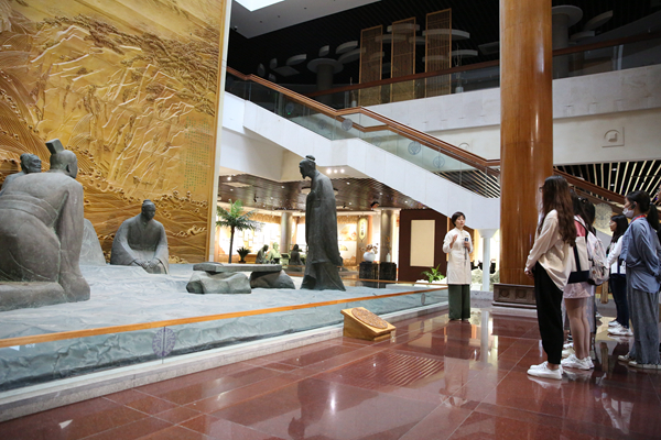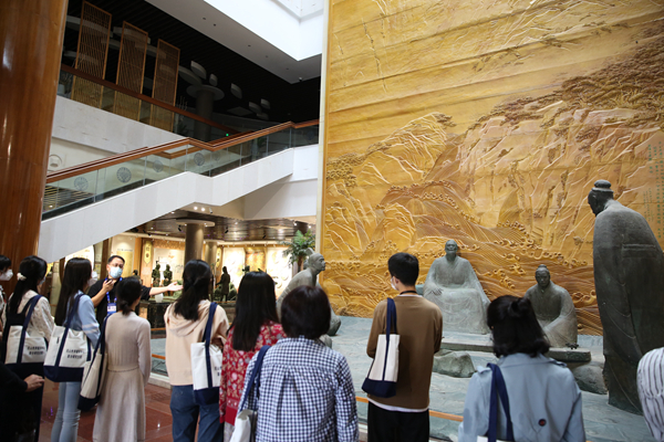 在孔子研究院,孔子研究院副院长刘续兵、陈晓霞以及收藏展览部有关负责同志为学员进行现场讲解。重点介绍了2013年习近平总书记视察孔子研究院并召开专家学者座谈会时关于增强文化自信和弘扬中华优秀传统文化的重要指示精神。