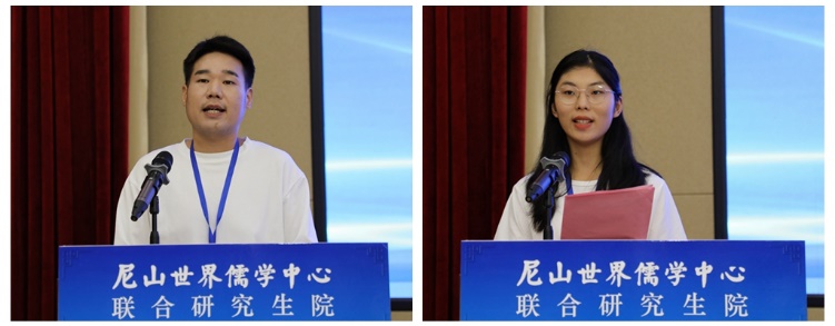 吉林大学博士研究生王征、武汉大学硕士研究生李雨婷作为2022级研究生代表发言。他们向为此次研修活动付出辛苦努力的各位领导和老师表示衷心感谢,认为本次研修课程内容丰富,氛围轻松愉快,通过探访儒家历史文化遗迹,聆听学界名家精彩纷呈的专题讲座,开展思辨意味十足的交流研讨,感受到不同学科百花齐放的学术视角,从宏观到微观、从理论到实际,全方位多层次学习了儒家文化要义。作为中华优秀传统文化(包括儒学)专项研究生,要立足中华优秀传统文化,不断汲取中华优秀传统文化的营养,深挖其丰富的文化资源,担负起弘扬中华优秀传统文化的重任,延续中华优秀传统文化的薪火,做中华优秀传统文化的忠实传承者和弘扬者。