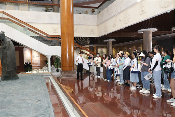来源:中国孔子网 作者: 日期:2023-08-098月9日上午,尼山世界儒学中心联合研究生院2023级中华优秀传统文化(包括儒学)专项硕士研究生研修活动首站来到孔子研究院,大家走进习近平总书记视察孔子研究院时的座谈会议室,重温习近平总书记关于弘扬中华优秀传统文化重要讲话精神,表示要夯实文化基础,发挥专业特长,为传承发展中华优秀传统文化做出贡献。
