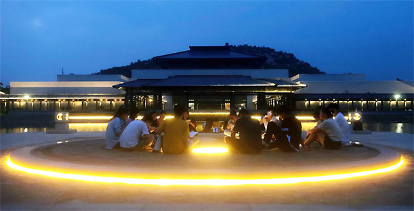 夜色降临,对传统文化充满热爱的00后学子们,聚集在孟苑的教室、草坪、湖边、读书角开展交流研讨,启迪哲思。