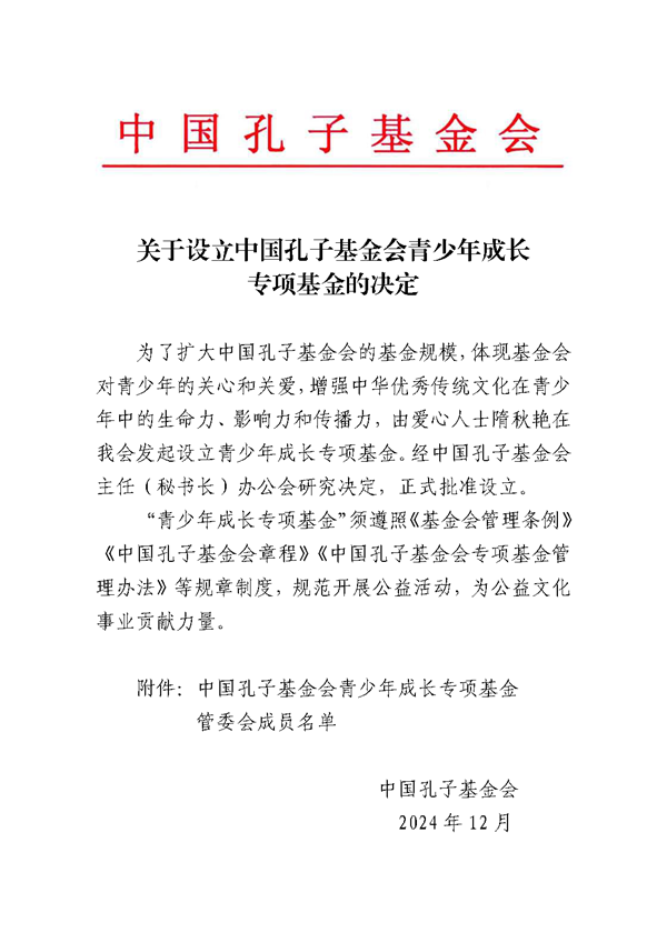关于设立中国孔子基金会青少年成长专项基金的决定